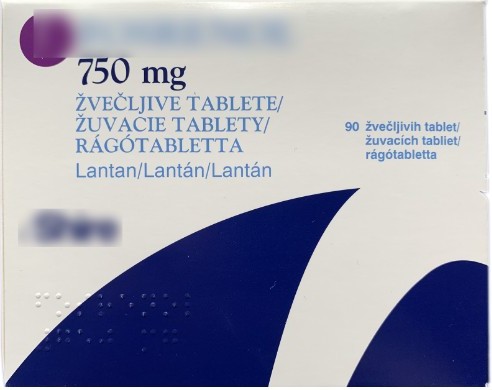 Liek s obsahom účinnej látky uhličitanu lantanitého.